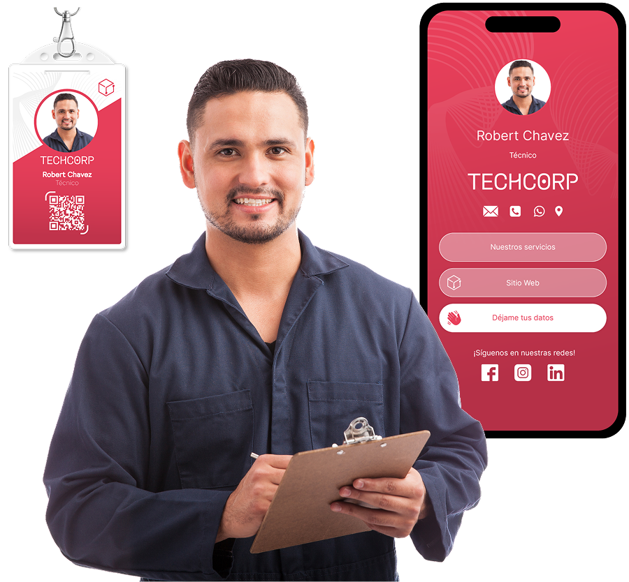 Comparte tus datos de forma profesional mientras te identificas con un fotocheck NFC. Usa tu tarjeta digital para mostrar credenciales, enlaces técnicos o manuales desde cualquier dispositivo.