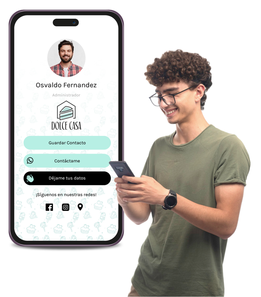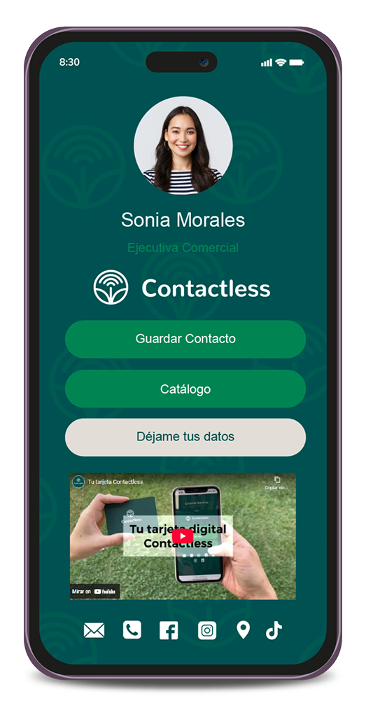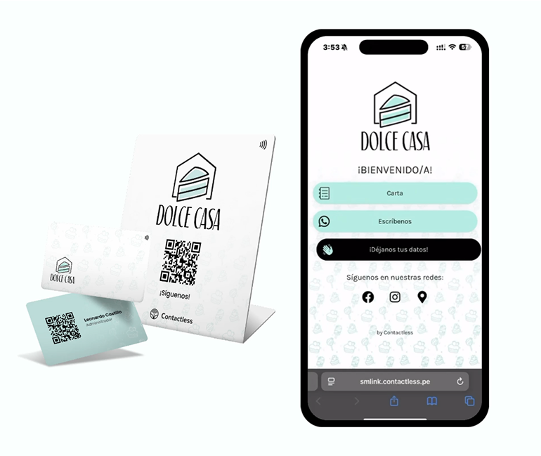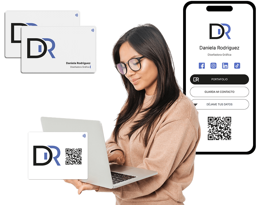 Las tarjetas Contactless integran tecnología NFC y código QR, permitiendo compartir tu información de contacto, redes sociales, ubicación y más, en segundos y sin necesidad de instalar ninguna aplicación.