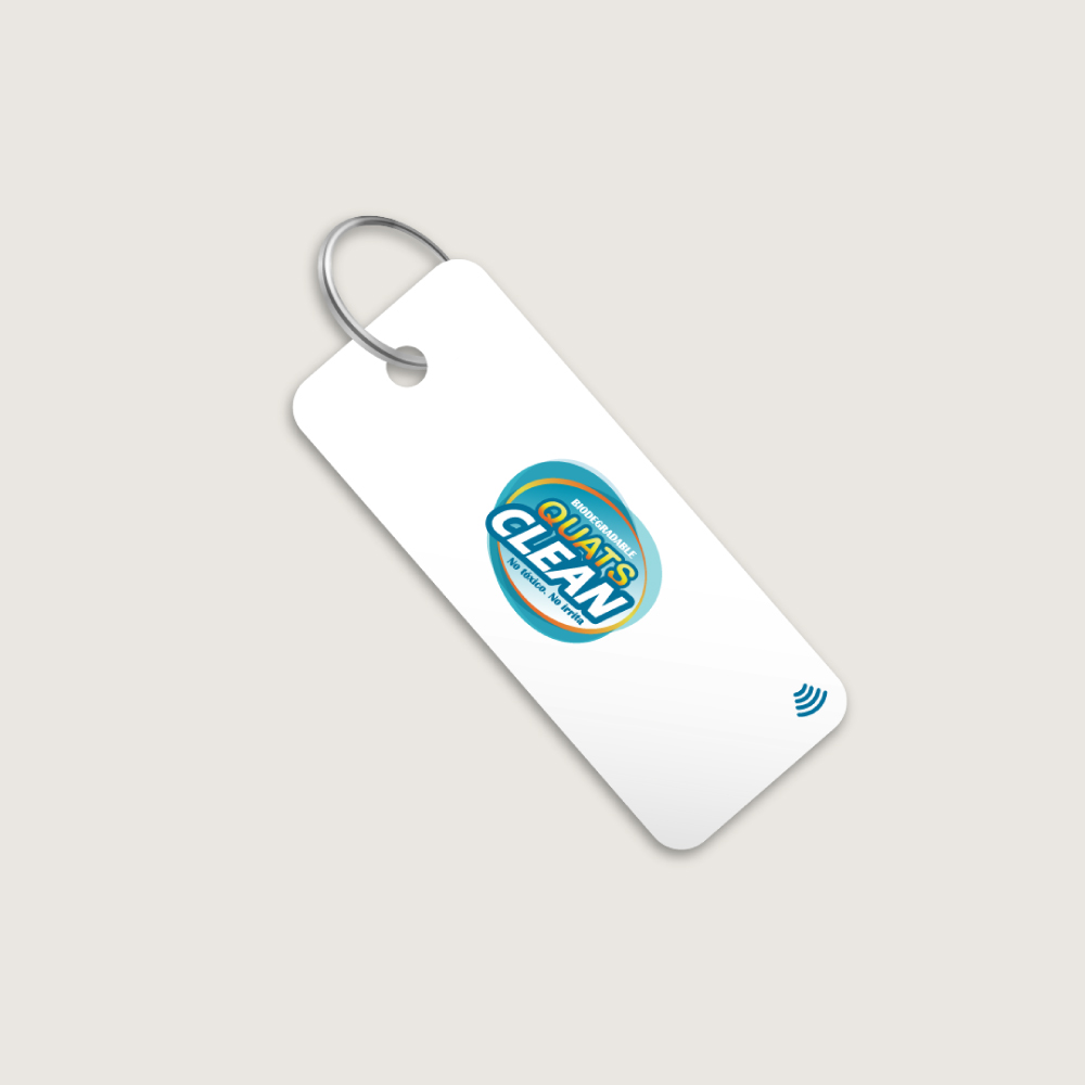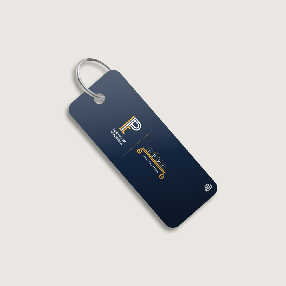 El llavero incluye la tecnología NFC para compartir tu tarjeta digital ilimitadamente acercándola a algún dispositivo móvil compatible y además incluye un QR en la parte de atrás para otra forma de compartir.