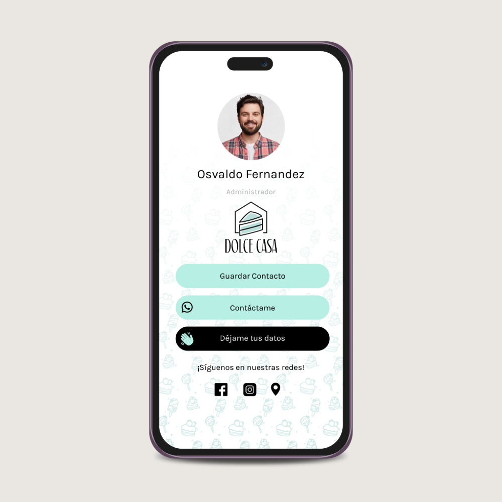 Una mini tarjeta con QR o NFC ideal para compartir tu perfil sin complicaciones.